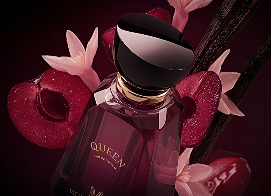 Step into a realm where elegance reigns supreme. Queen Eau de Parfum is a signature fragrance crafted for the modern woman who commands attention with quiet confidence and timeless allure. A luminous opening of crisp pear teases the senses before unfolding into the delicate radiance of neroli blossoms, evoking purity and grace. As the heart deepens, rich, sultry Bourbon vanilla emerges, wrapping the skin in a soft, warm embrace that lingers into the night. The bottle’s every facet catches the light like a hidden jewel in a queen’s crown. The contrast of the dark lacquered cap against the jewel-toned glass echoes the harmony of light and shadow, delicacy and dominance form an emblem of power, femininity, and sophistication. Each detail, from the radiant color to the commanding cap, celebrates the woman who wears her crown with quiet certainty and undeniable grace.